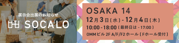 この度12月に開催される「SOCALO OSAKA 14」へ出展いたします。