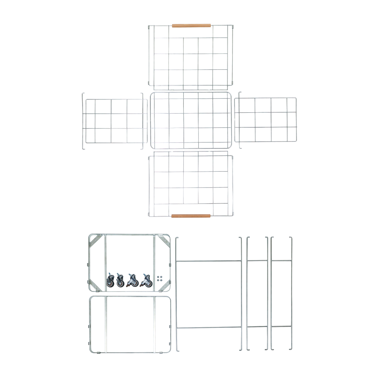 注意事項 | ・ご使用前に必ずお読みいただき、正しくご使用ください。・指をフレームに挟まないように注意し、手順に沿って組み立ててください。・商品は平らな場所へ水平に設置してください。傾斜、段差のある場所でのご使用は、転倒、破損、ガタツキの原因となります。・火気や高温になるものに本体を近づけないでください。火災や本品の変質、変形の原因となります。・直射日光が当たる場所で長期間保管しないでください、変色、変形の原因となります。・耐荷重以上のものを格納しないでください。変形や破損の原因となります。・全てのボルト、ナットが確実に締められているか確認し、定期的に締め直しをおこなってください。・無垢フローリング等、デリケートな素材の床でご使用の際はキズが付く恐れがありますので、急な方向転換等、移動にはご注意ください。【ZINCについてのご注意】・素材表面に製造工程で付く細かなスリ傷がございます。予めご了承ください。 |
