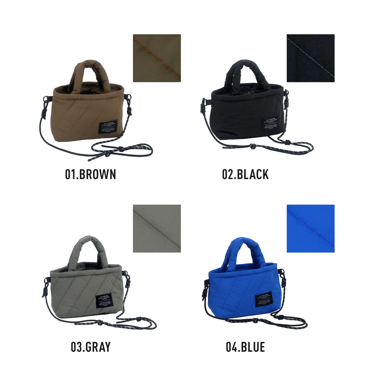 カラーはコーディネートのアクセントになる鮮やかなブルーに加え、ブラウン・ブラック・グレイの落ち着いたトーンを揃えた全4色展開です。