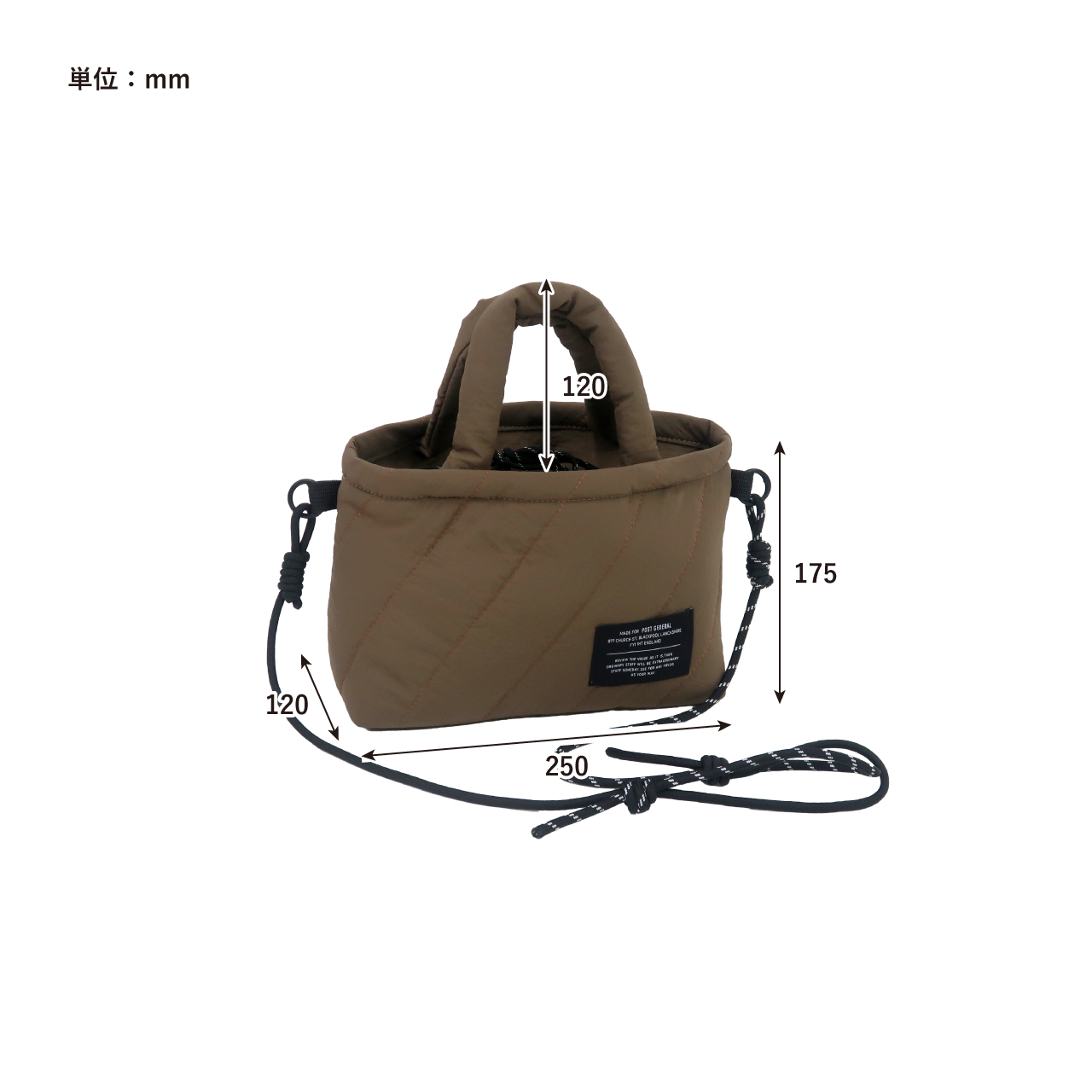 サイズ | 約 w250×d120×h175mm(持ち手 h120mm) 重量:約 155g |