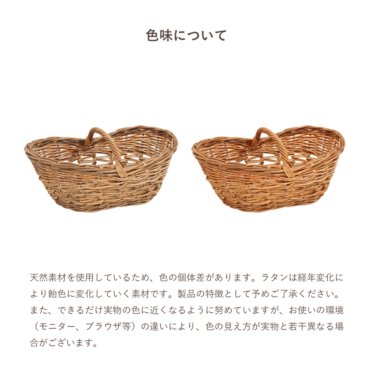 注意事項 | ・天然素材を使用したハンドメイド品のため、形の歪みやサイズ/色味の濃淡など一つひとつ個体差があります。・表皮をそのまま残して編んでおりますので、表皮の剥がれが生じる場合があります。また、黒い斑点やささくれのある素材が含まれる場合があります。 |