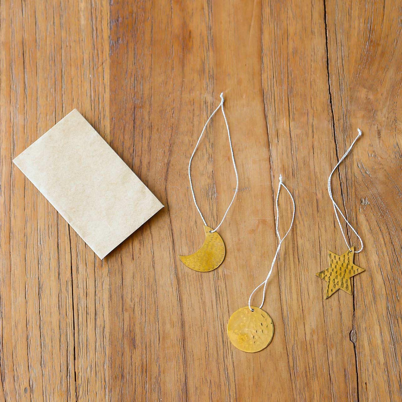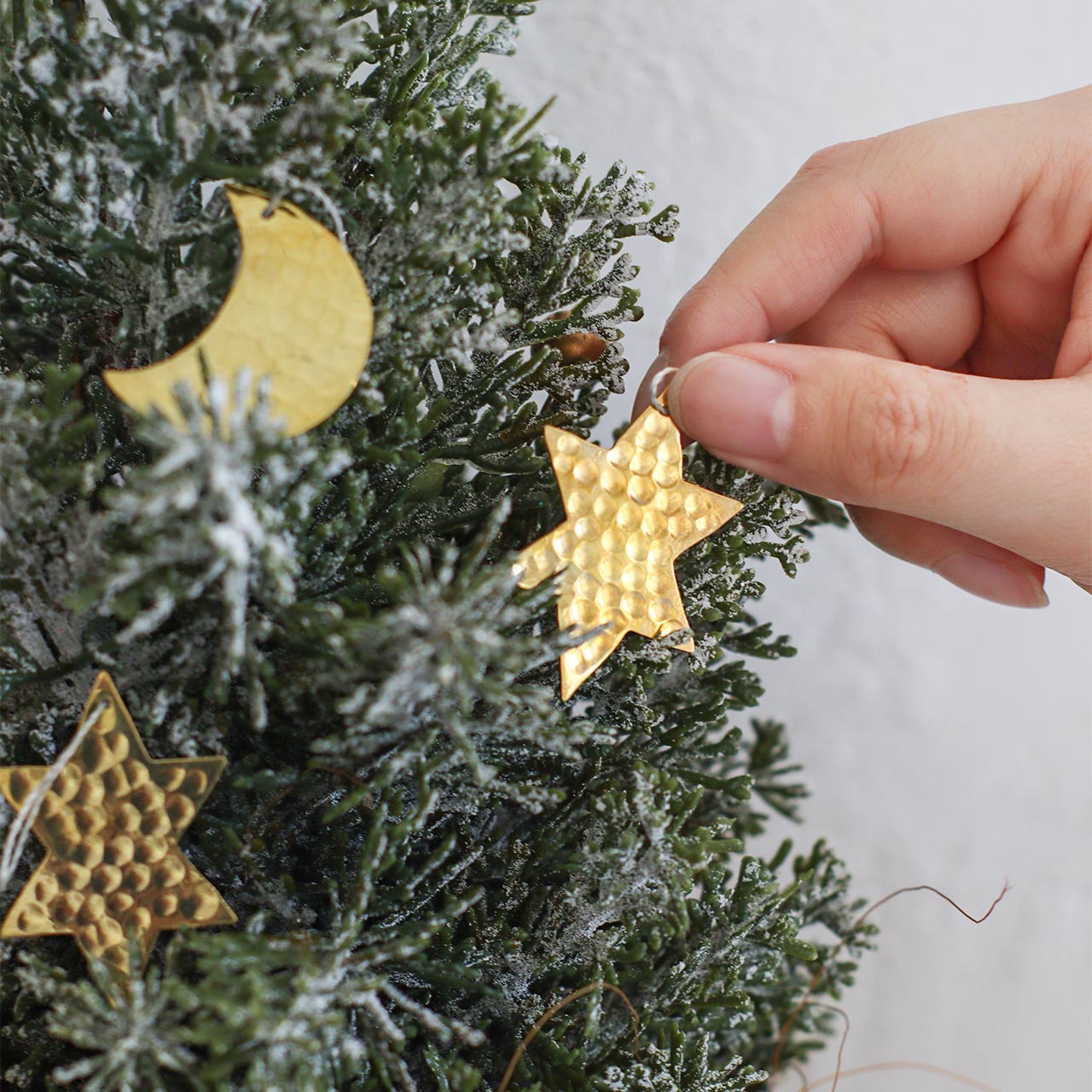 スター・ムーン・ラウンドの全3種類がそれぞれ1個ずつ入ったセットで、クリスマスツリーに吊るすのはもちろん、フェアリーライトやグリーン、リースと組み合わせれば、立体感のあるコーディネートも楽しめます。