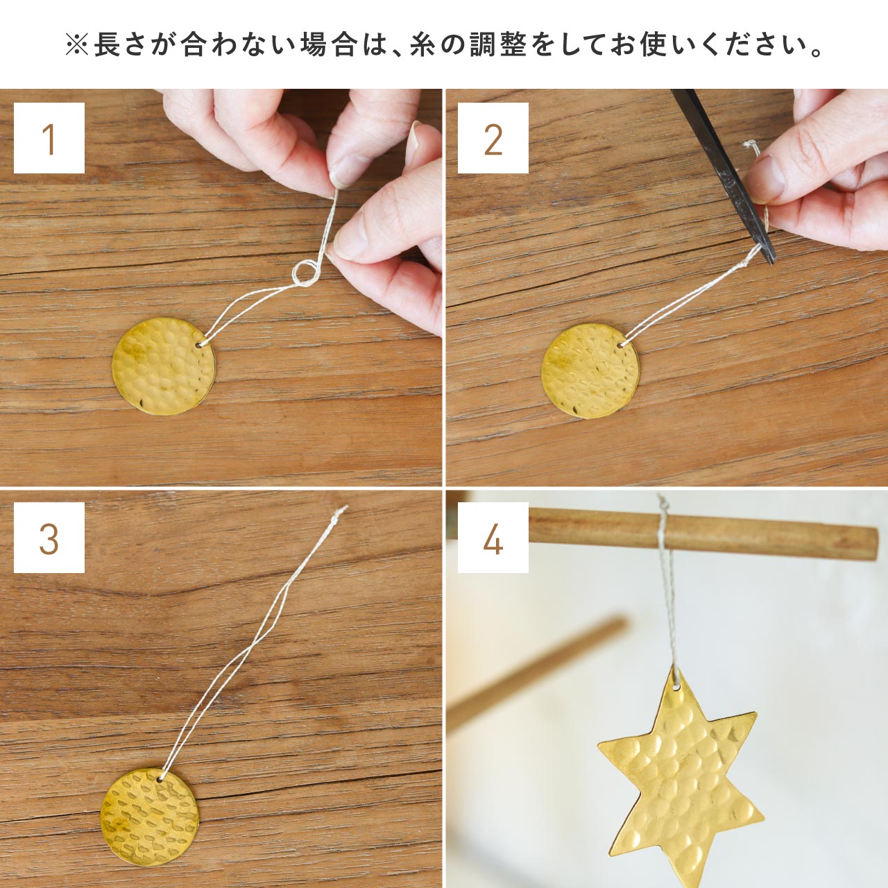 注意事項 | ・無塗装仕上げのため、黒くくすんできます。経年変化をお楽しみください。・真鍮は柔らかく変形しやすいため、歪みがある商品があります。ご了承ください。・オーナメントの端が尖っている箇所があります。手や目を傷つけないようにご注意ください。・小さなお子様の手の届かないところでご使用ください。 |
