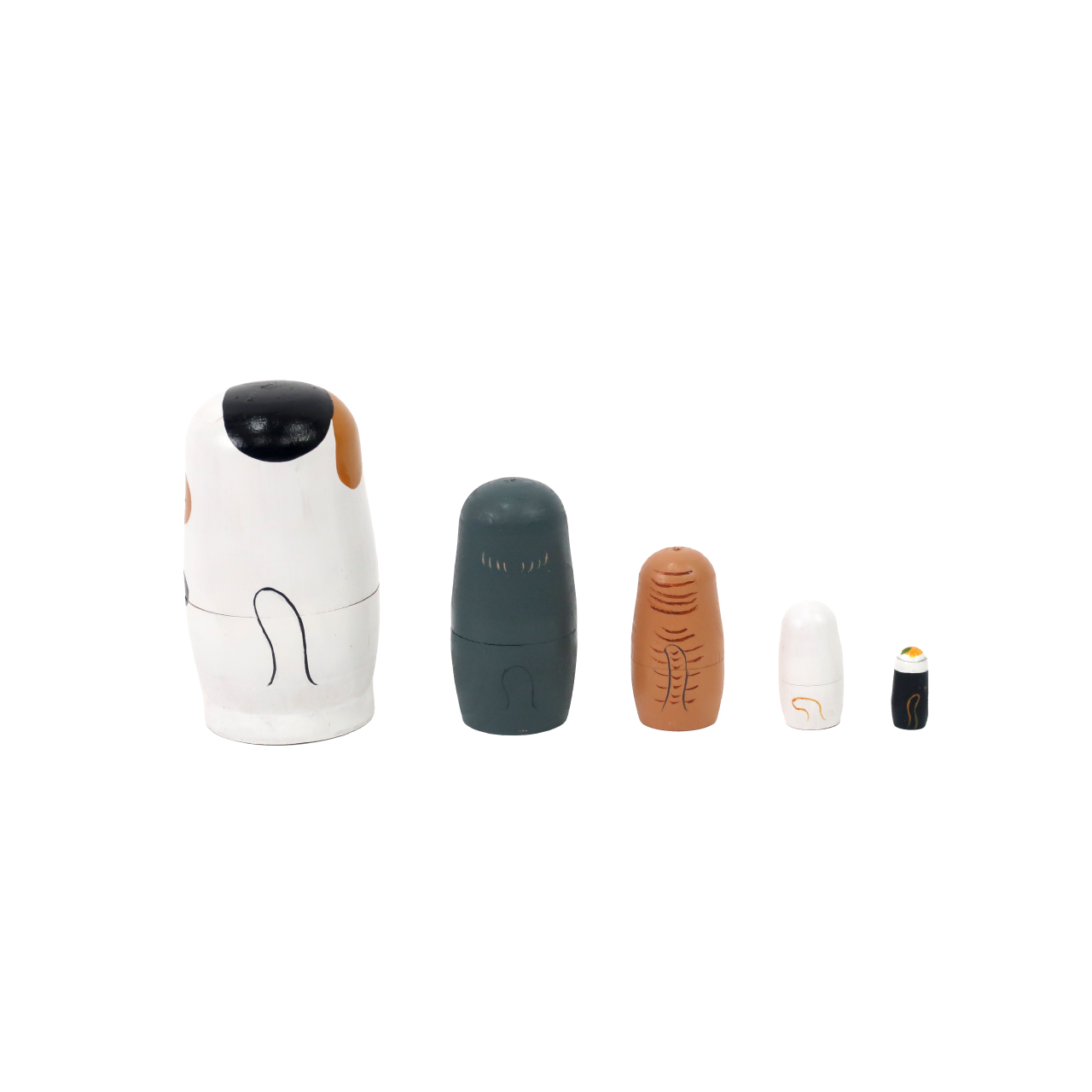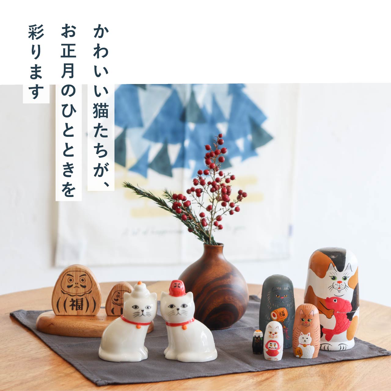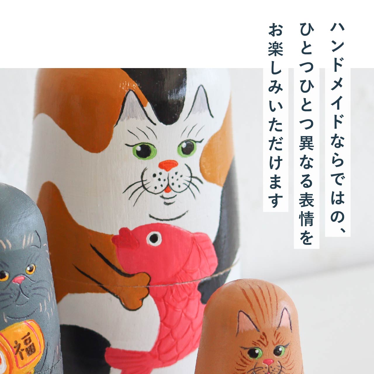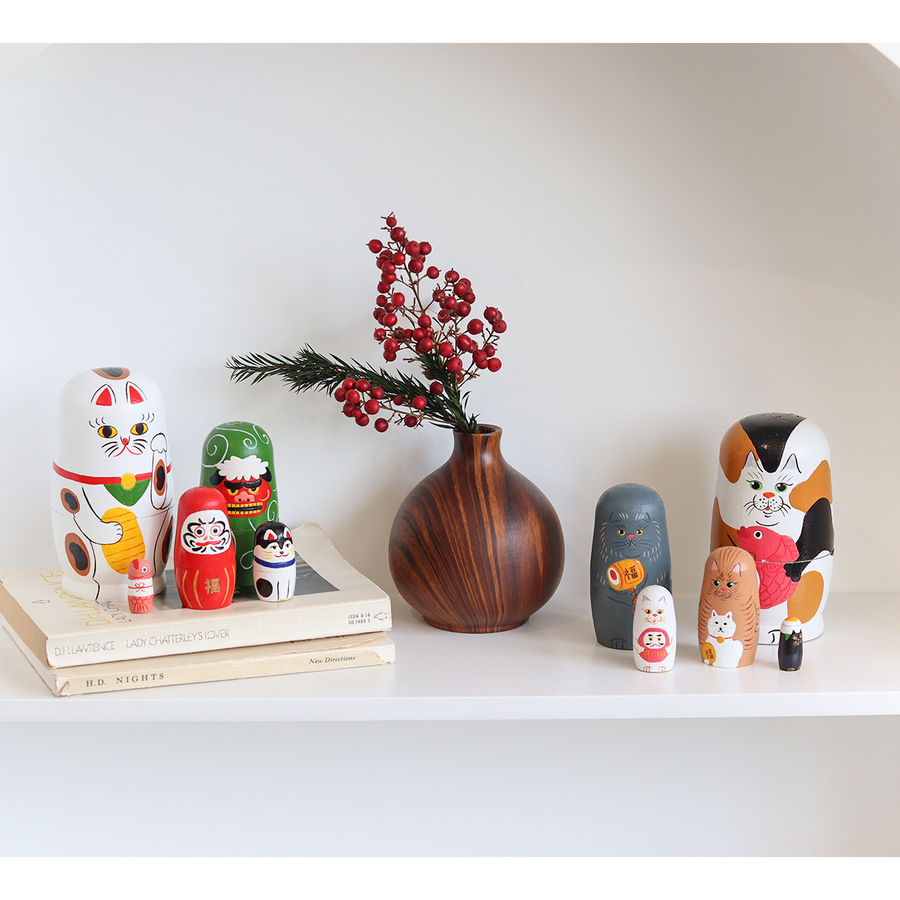 木のぬくもり感じる、猫のお正月マトリョーシカ。