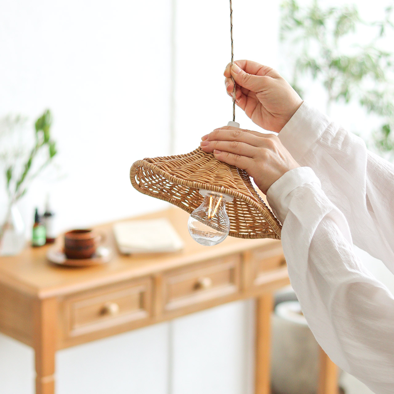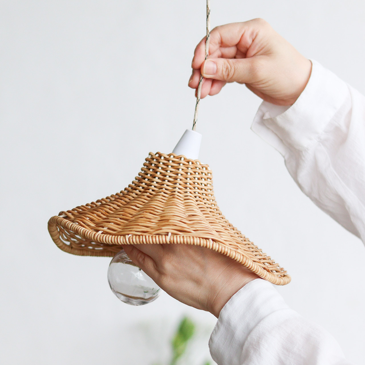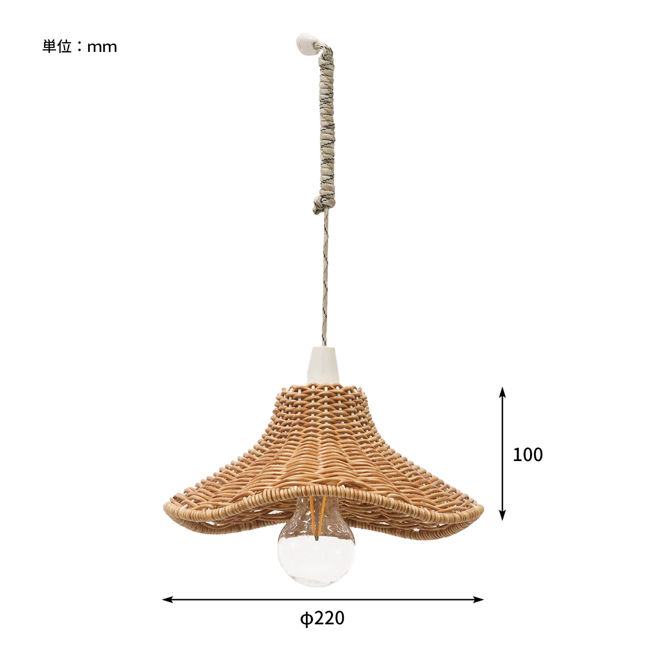 | 注意事項 | ・取扱説明書をよくお読みの上、正しくご使用ください。・火気のそばに置かないでください。変形や破損の原因になります。・長時間日光にあてると変色・変形の恐れがありますのでご注意ください。・LEDライト本体とソケットが正しい位置で取付けられていない場合、常時点灯したり上手く点灯しない場合がございます。故障ではありませんので、今一度正しく取り付けができているかご確認ください。【シェードについて】・火のそばや直射日光の当たる場所、高温になる場所には置かないでください。・手編みのため、サイズや形に若干の個体差があります。・汚れた場合は水拭きをおすすめします。・洗剤をお使いの際は、中性洗剤をご使用の上、しっかりすすいでください。・たわし、クレンザー、漂白剤のご使用はお避けください。・アイアンを使用しているため、濡れたまま放置すると錆の原因となります。ご使用後は、乾燥させ通気性の良い場所で保管してください。 |