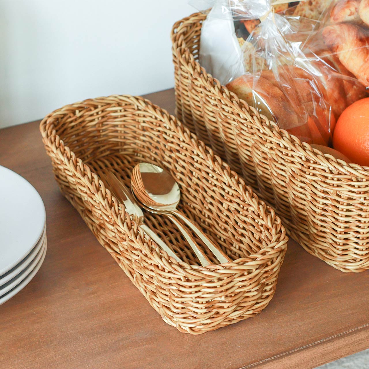 カトラリー収納はもちろん、お皿替わりにパンやお菓子を入れたり、小物をまとめたりと、マルチに使える便利なサイズ感。