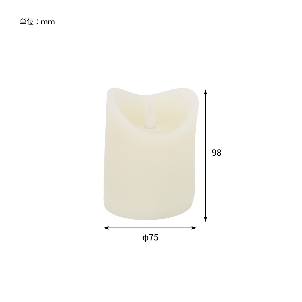 上面の自然に溶けたようなくぼみや、蝋でコーティングされた表面の凹凸が、本物のキャンドルの質感を再現しています。