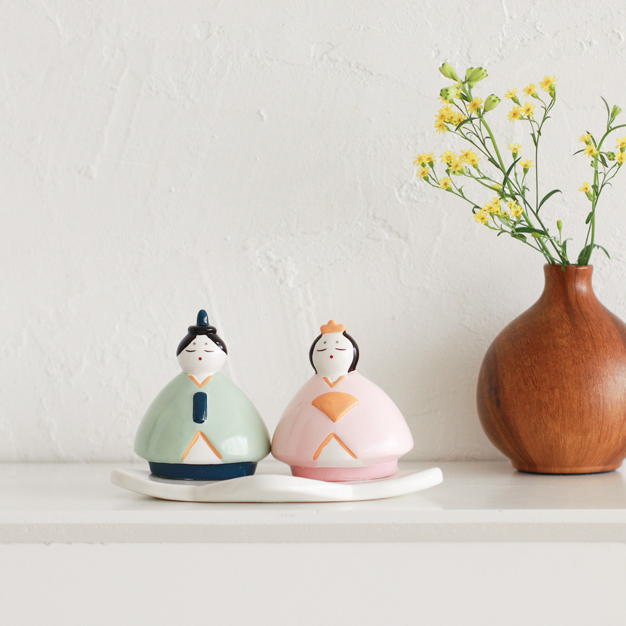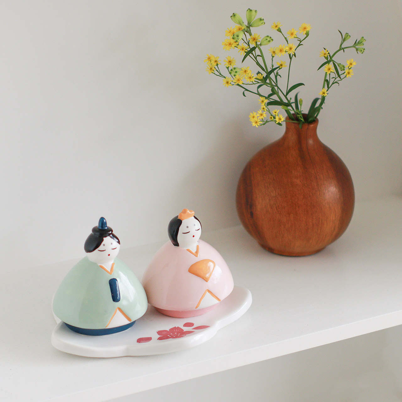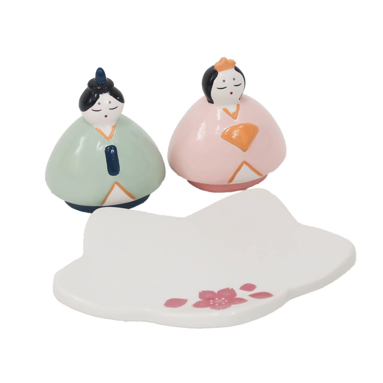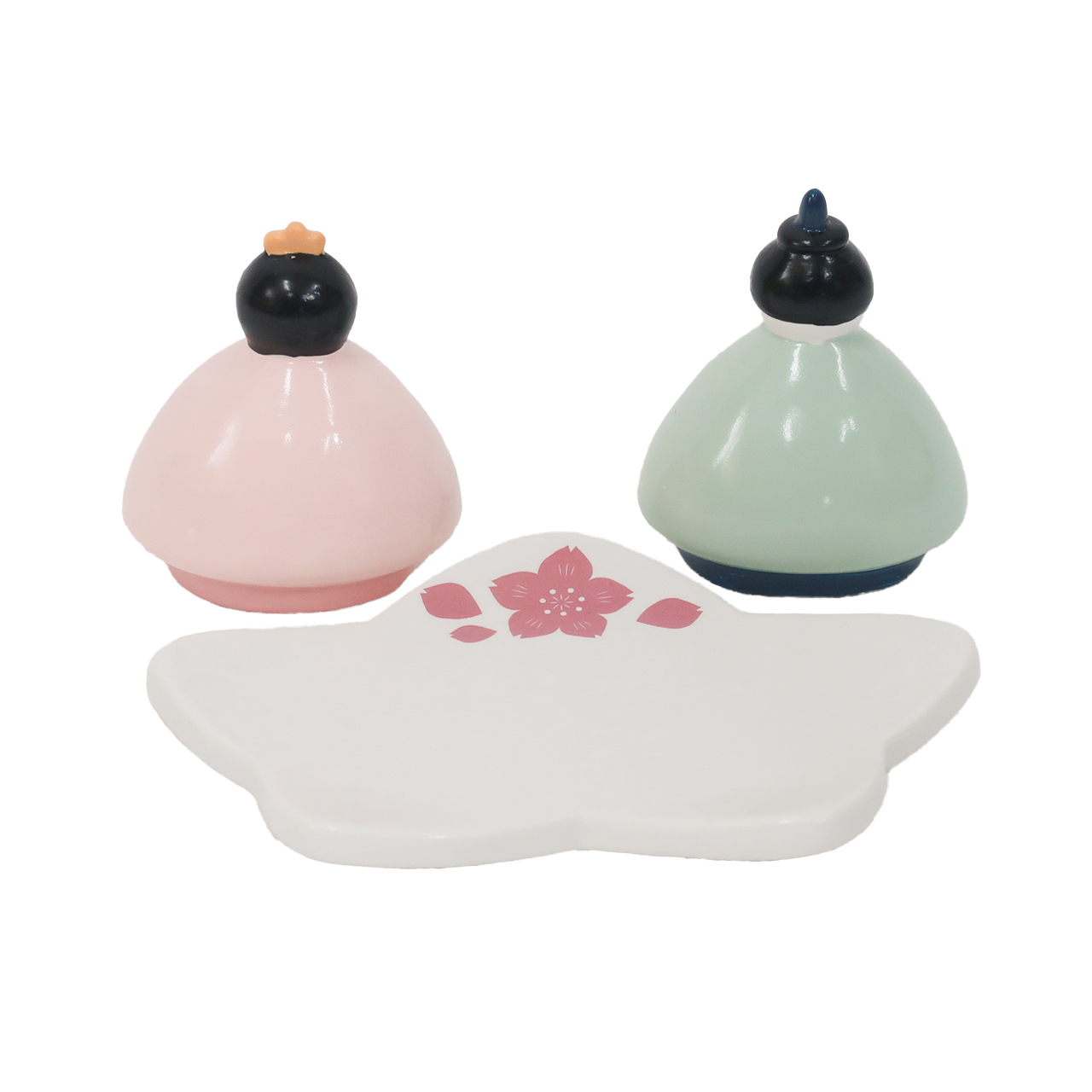 ころんとしたフォルムが愛らしい、手のひらサイズの磁器製ひな祭りオブジェ。