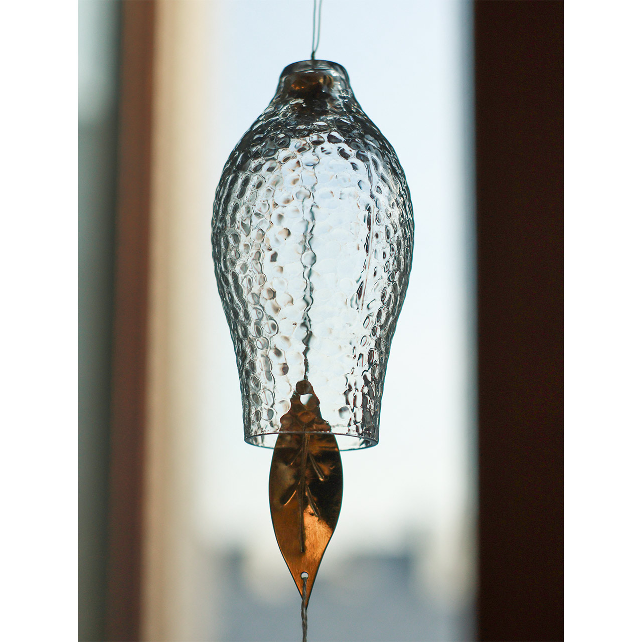 ガラスと真鍮を組み合わせた、涼しげで圧迫感のない佇まいの風鈴。