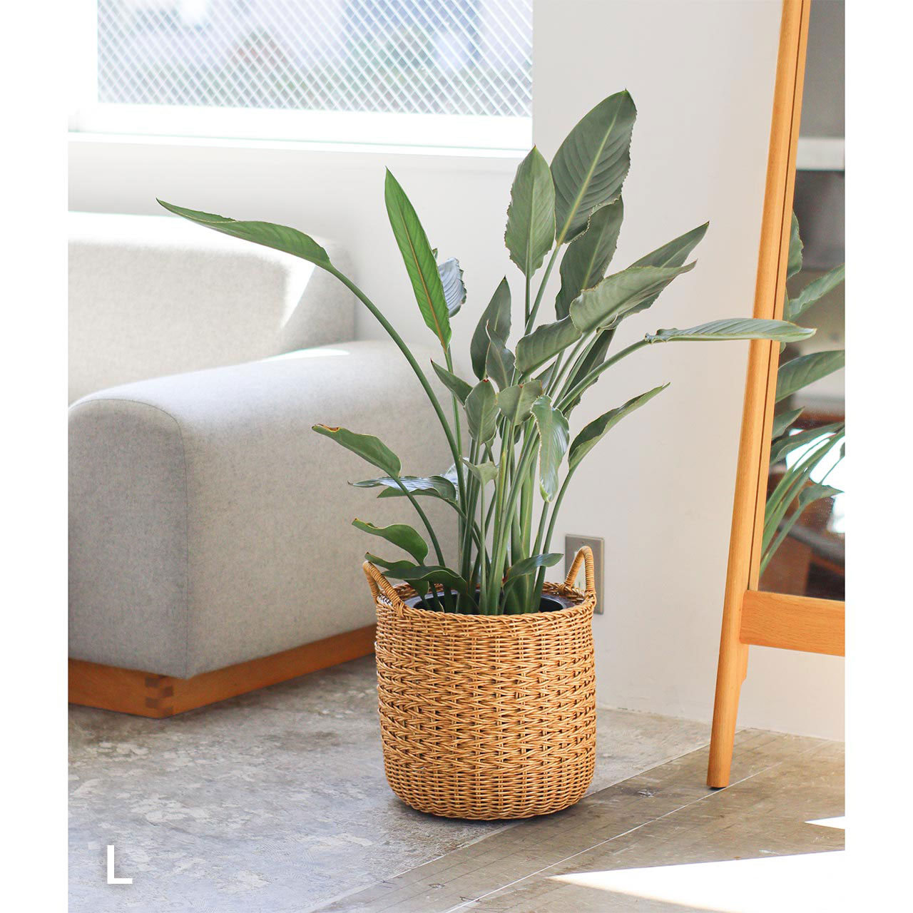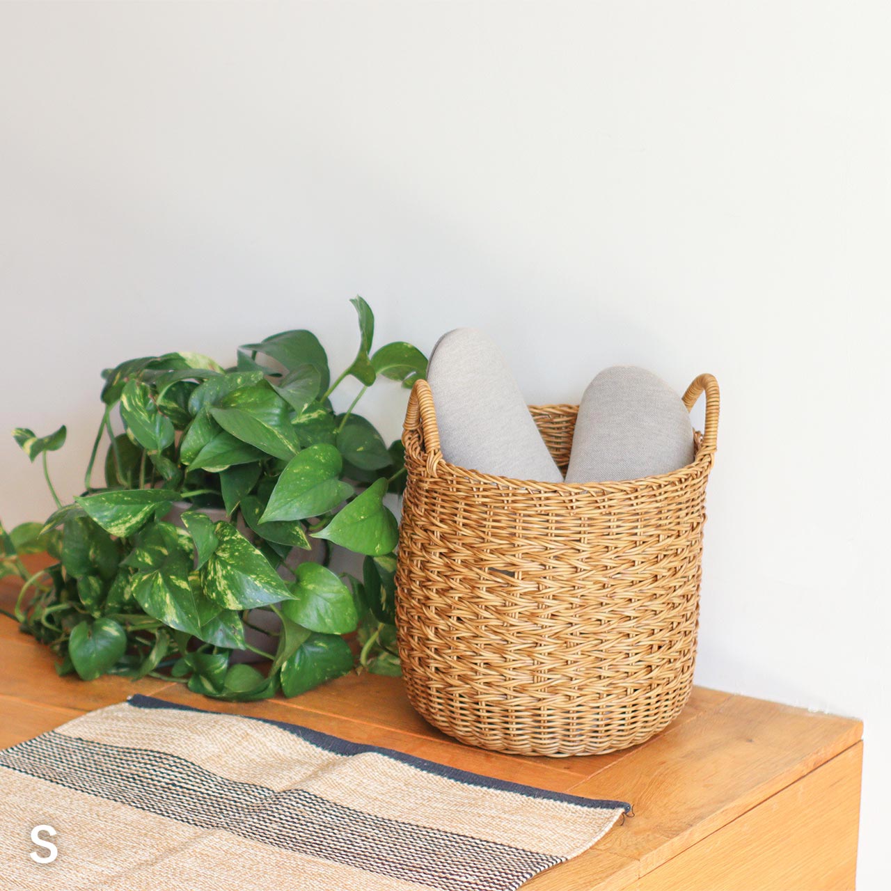 Sサイズはスリッパやお手入れグッズの収納に、Lサイズはランドリーバスケットやブランケット収納として、さらに鉢カバーとしても活躍。