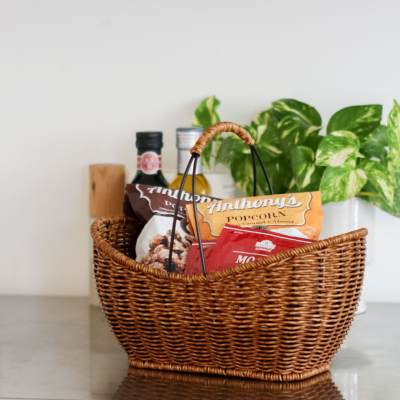 ナチュラルなかごの表情の中に程よいメリハリが生まれ、甘くなりすぎず、空間をきりっと引き締めてくれます。