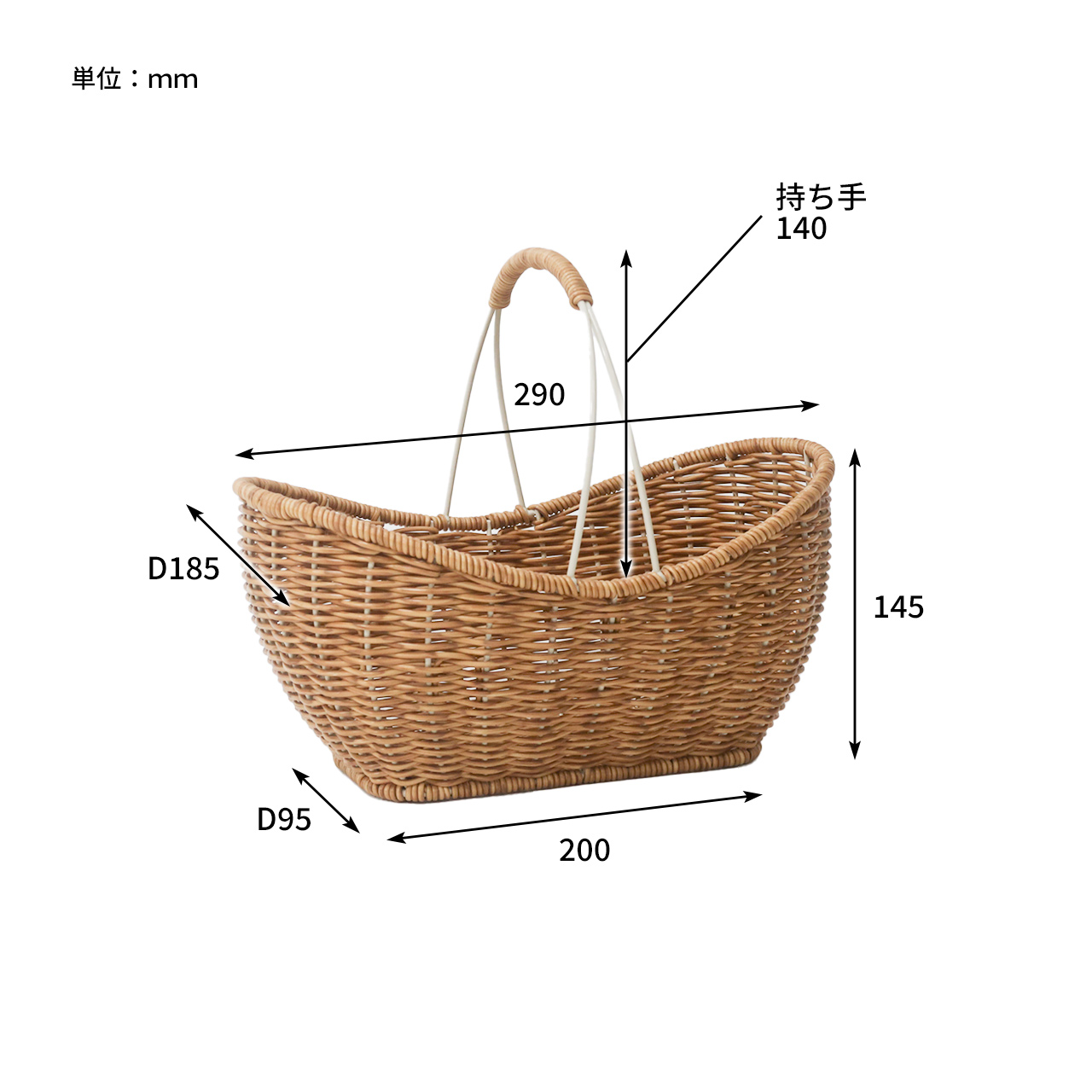 | サイズ | 約 w290×d185×h145mm(持ち手h140mm) 重量:約 420g |