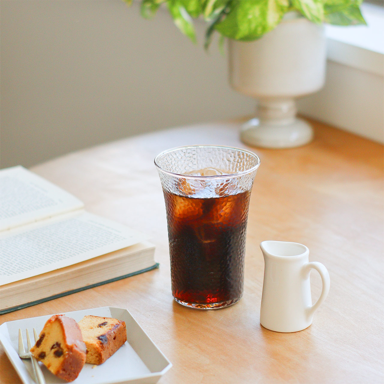 光をやわらかく反射し、飲み物の色合いや氷のきらめきを美しく引き立てます。