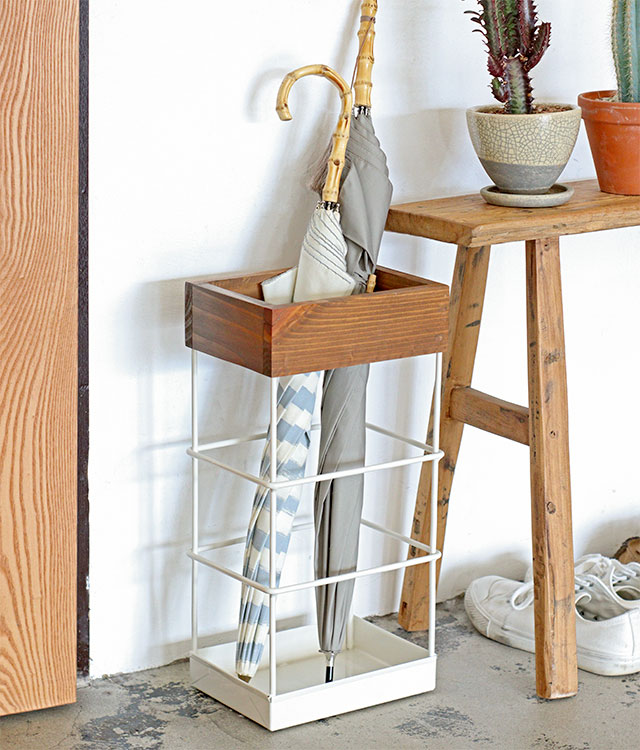 シンプルでスタイリッシュなアイアンパインウッドのアンブレラスタンド。