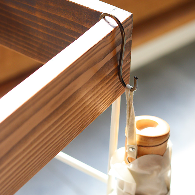 S字フックを引っ掛けると折り畳み傘も引っ掛けられます。