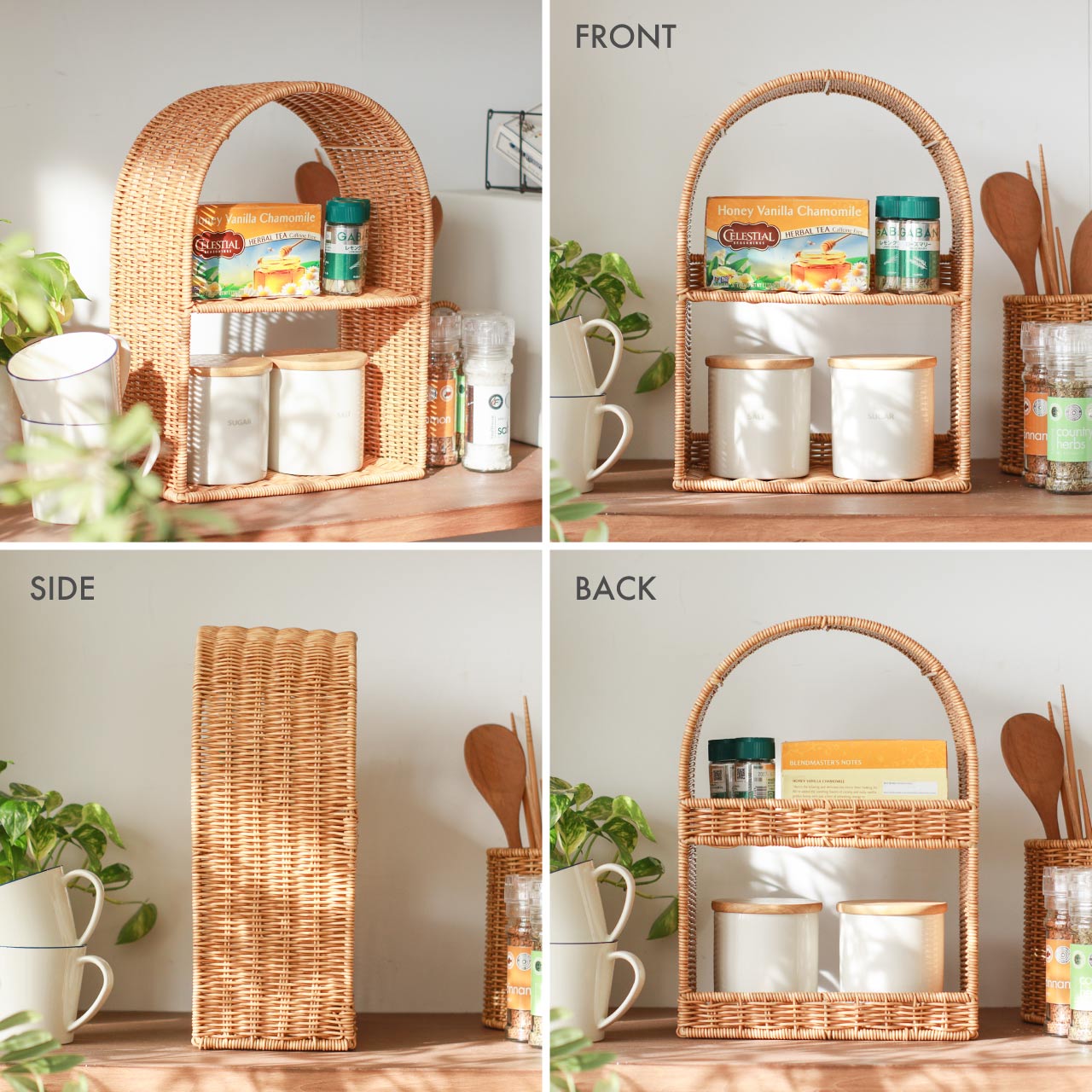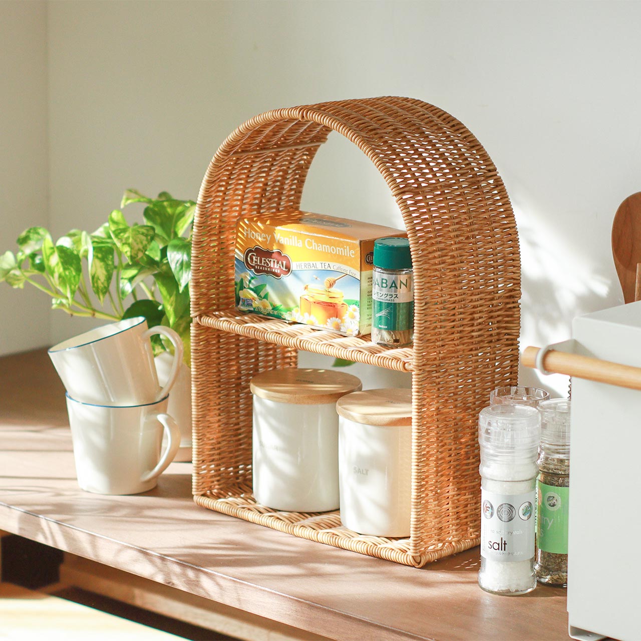 キッチンでは調味料置きとして、リビングでは小さな鉢植えや雑貨のディスプレイにもおすすめです。