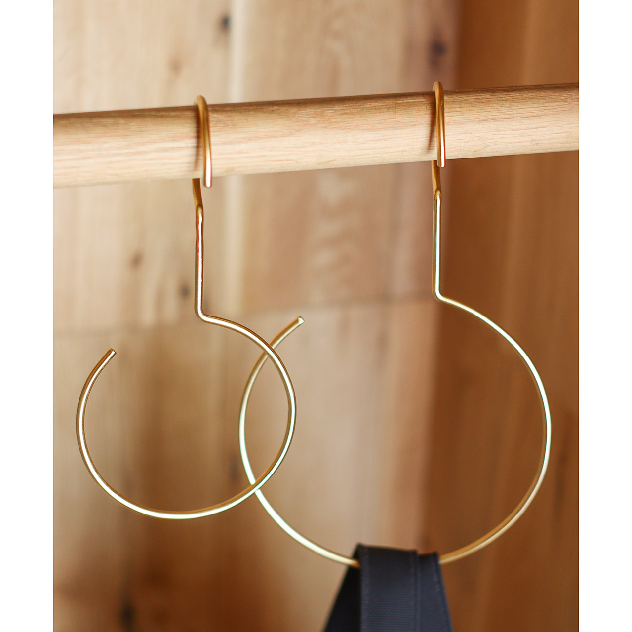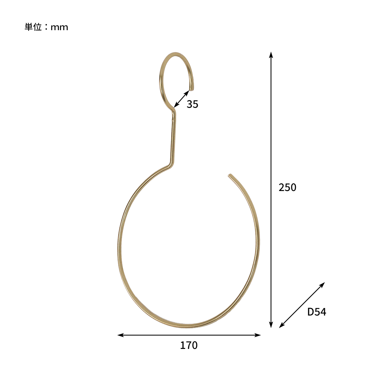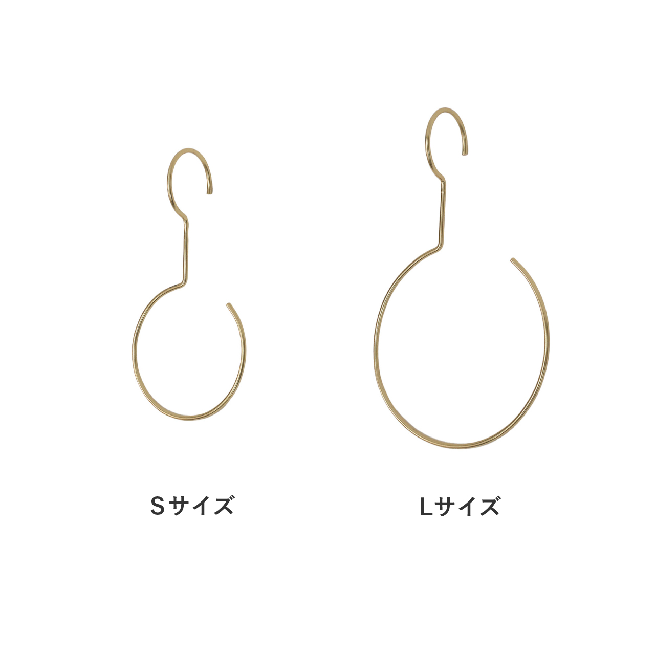 繊細な円形フォルムと、落ち着いたゴールドカラーが印象的なスチール製のフックハンガー。