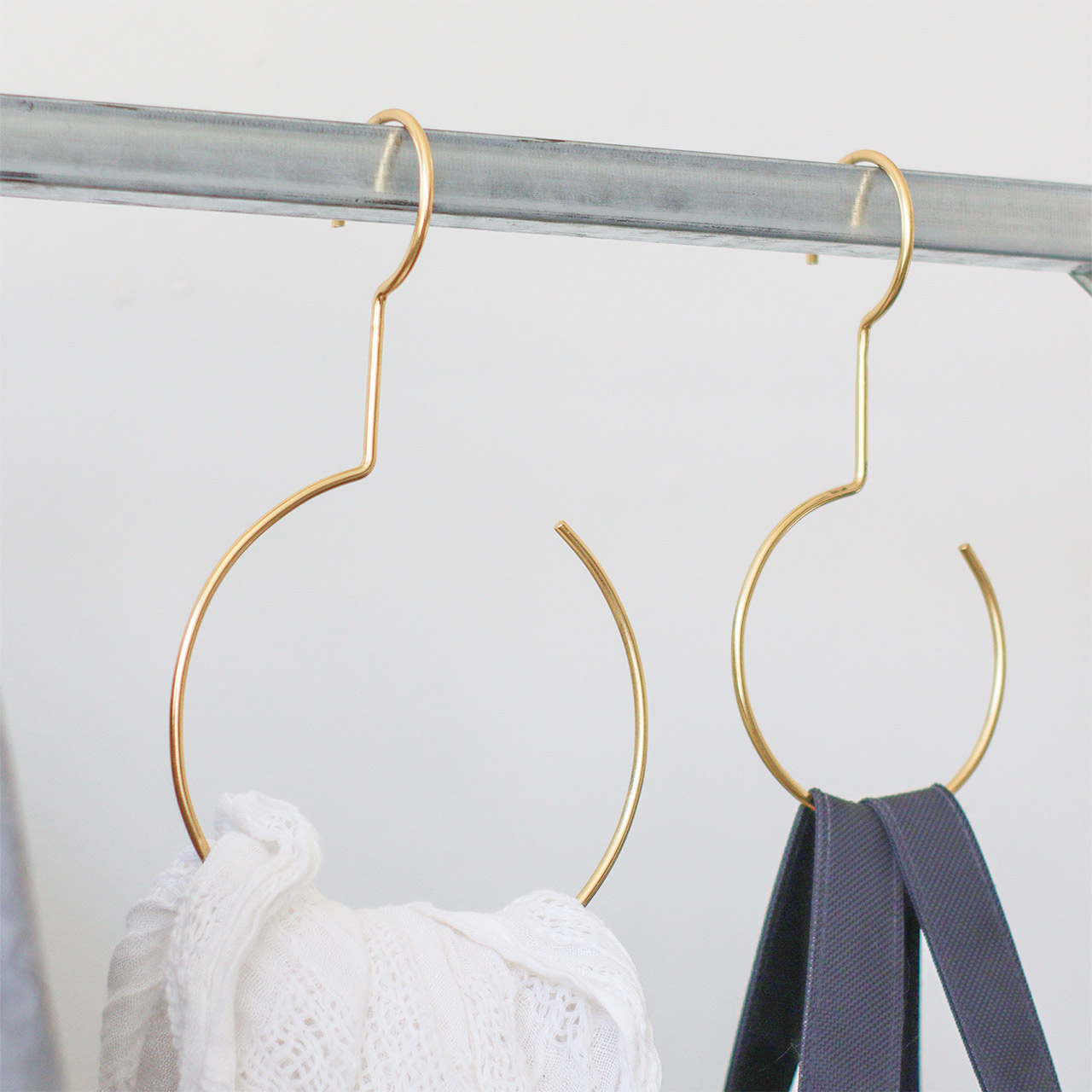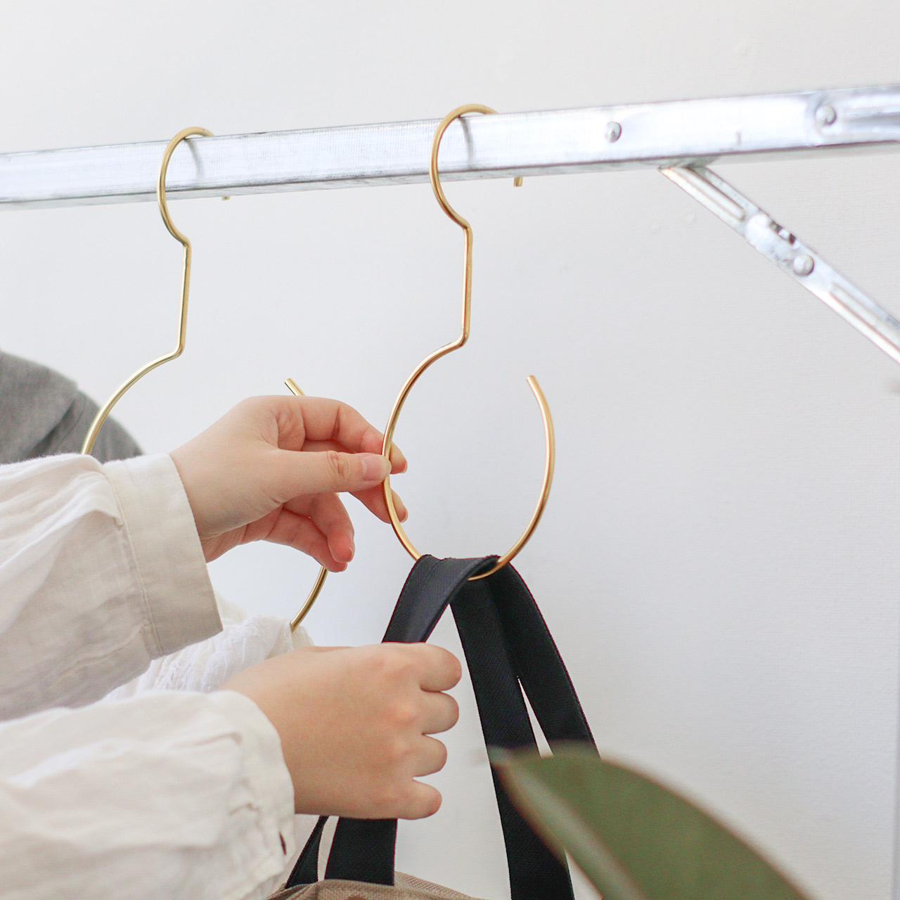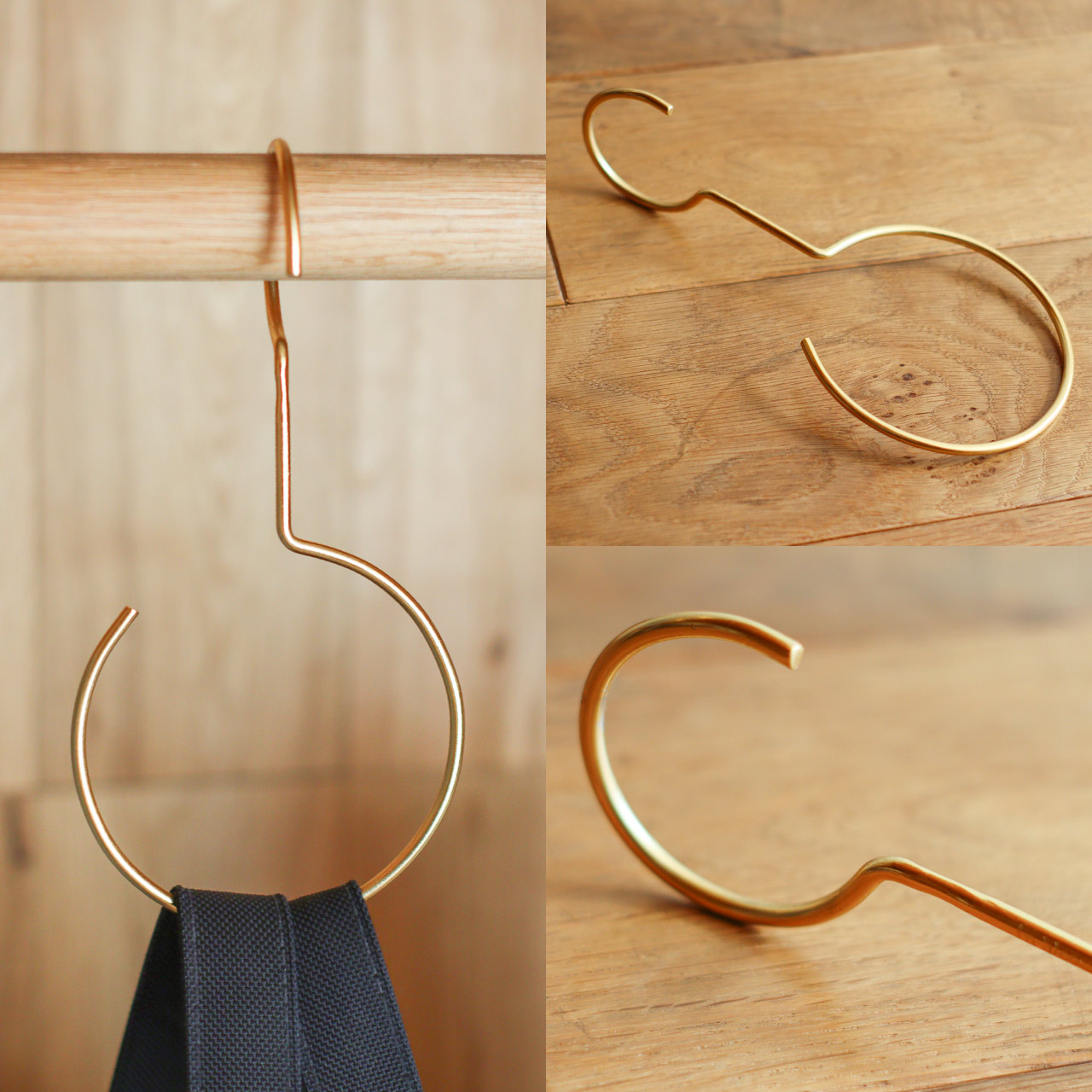 繊細な円形フォルムと、落ち着いたゴールドカラーが印象的なスチール製のフックハンガー。