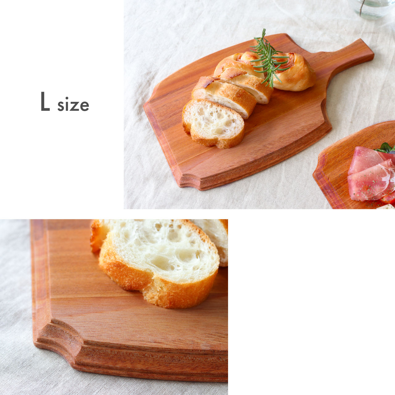 | サイズ | ・Sサイズ size:約 w180×d250×h15mm 重量: 約 245g ○オイル仕上げ(ホワイトミネラルオイル) ・Lサイズ size:約 w200×d320×h15mm 重量: 約 300g ○オイル仕上げ(ホワイトミネラルオイル) |