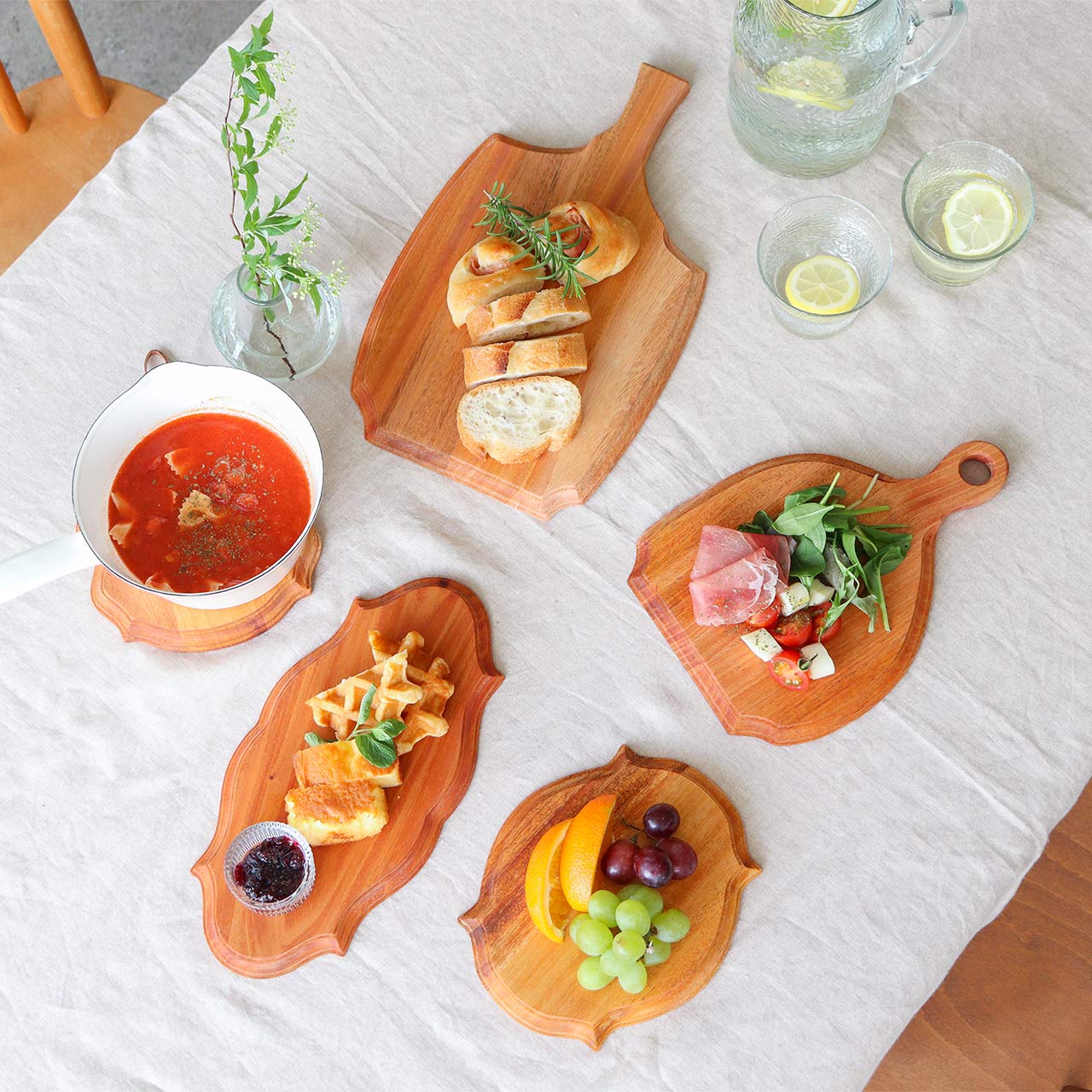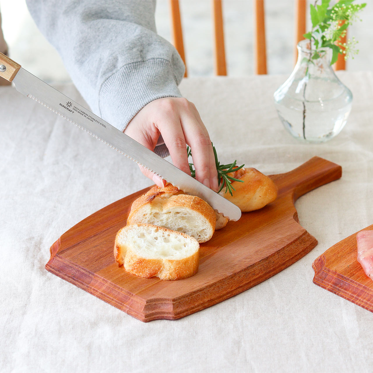 まな板としてはもちろん、カットした食材をそのまま並べるだけで、食卓をさりげなく引き立ててくれます。