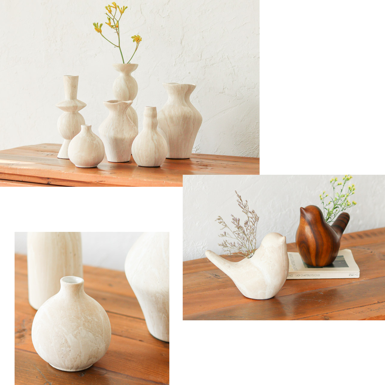 異なる形を組み合わせて並べても、一つで飾っても絵になるデザインです。