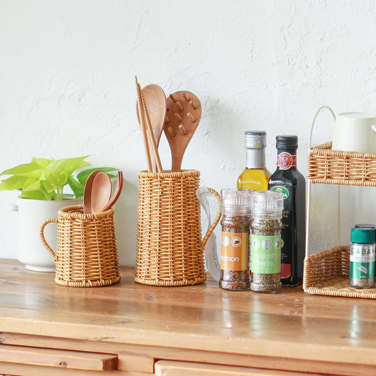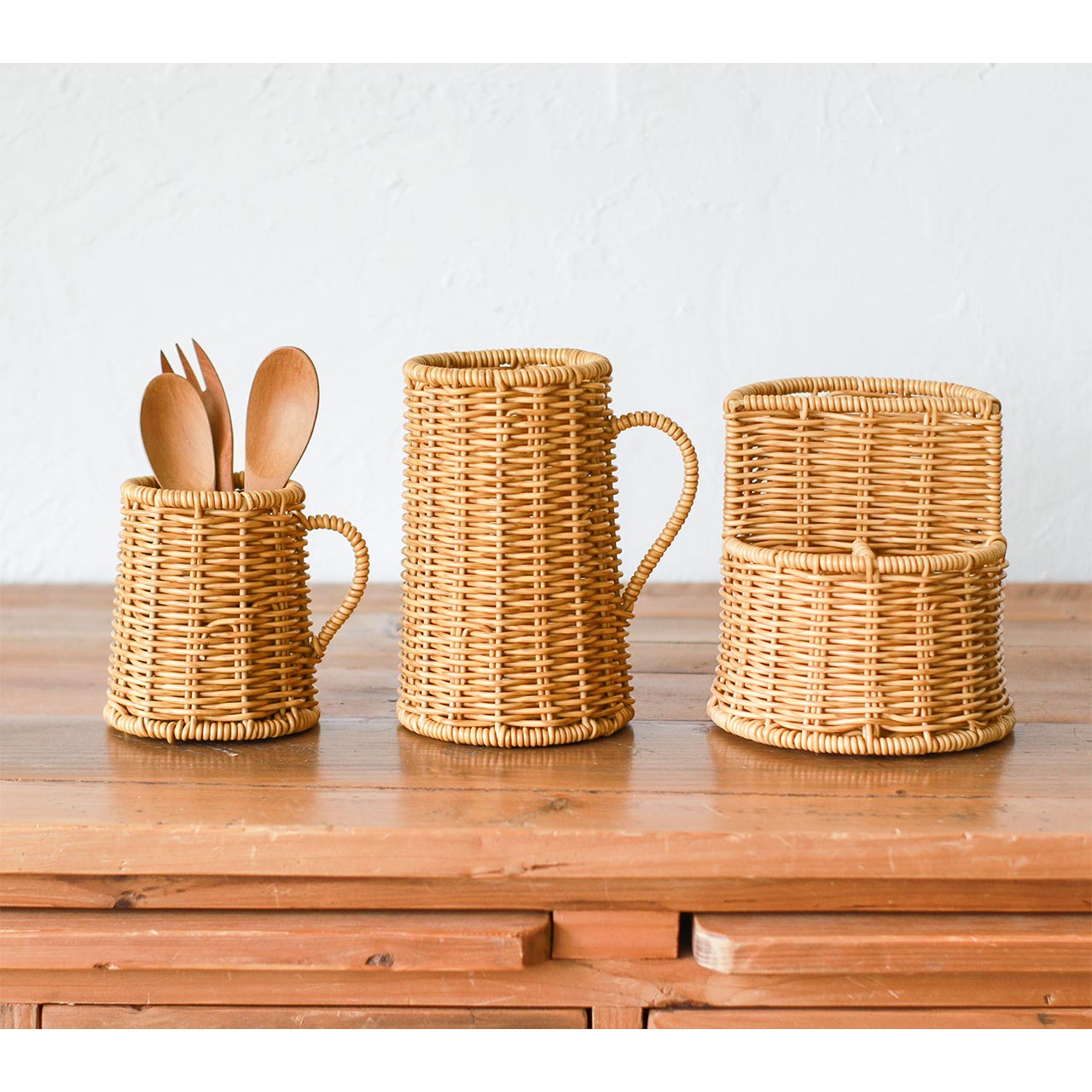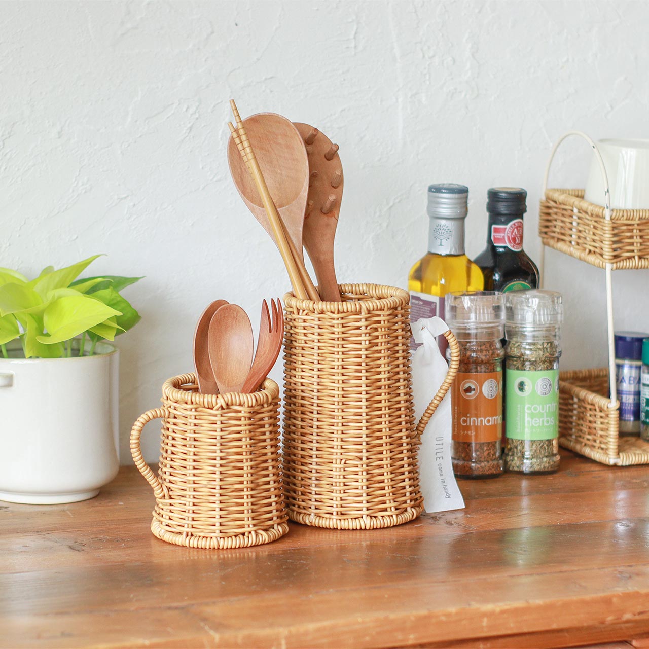 かご編みのナチュラルな風合いがやさしく映える、カトラリースタンド。
