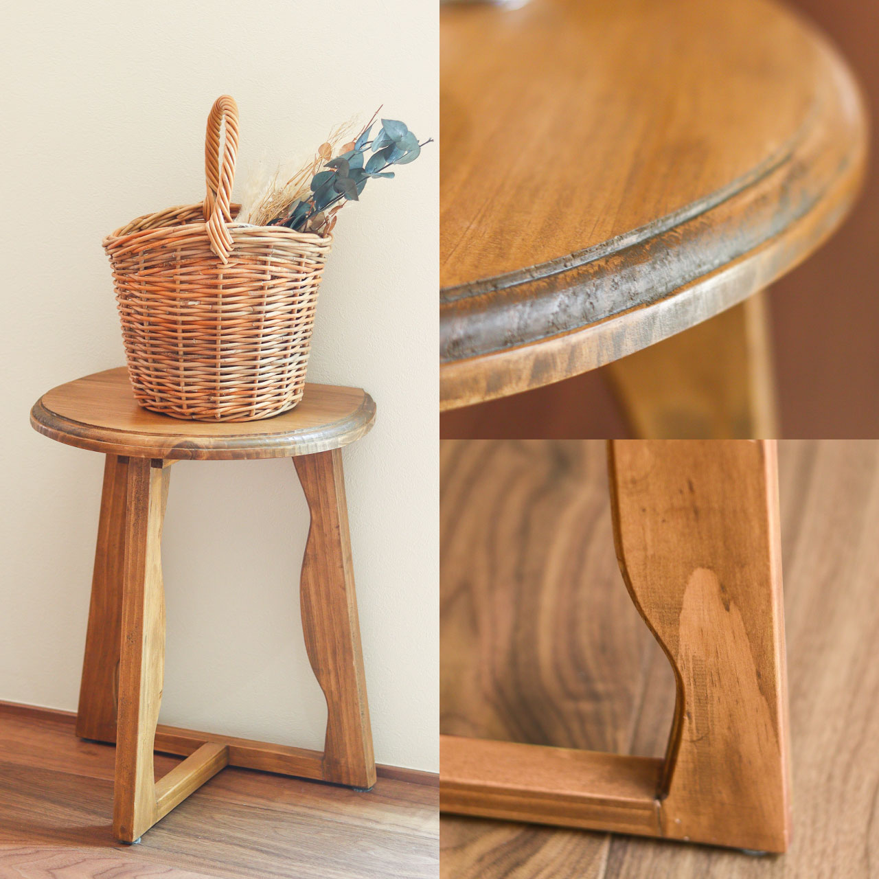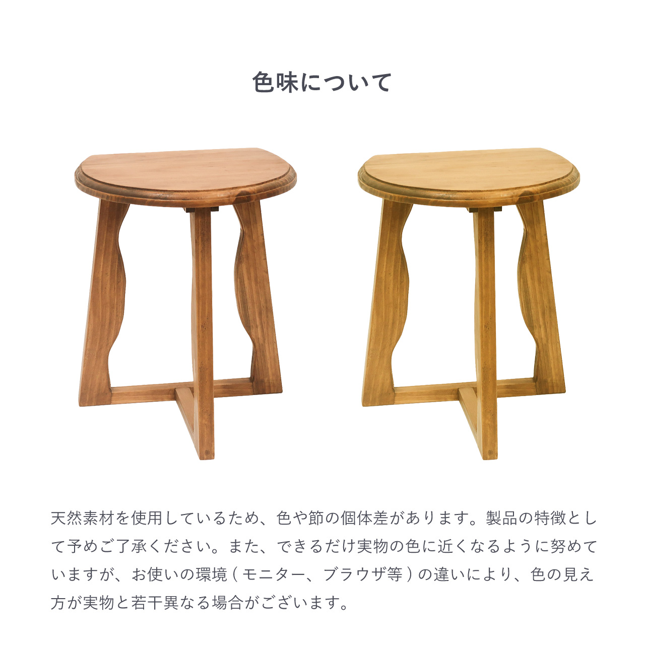 | 注意事項 | ・天然木が主材のため、節や小さな傷・乾燥による多少のひび割れ・反り等がある場合がございます。・裏面や内側にパテ埋めなどの補修を施している箇所がある場合がございます。予めご了承くださいませ。・オイル塗装を施しておりますので、合成洗剤などの洗剤でのふき取りは、色落ちする場合がございます。お手入れ方法は、固く絞った布でふき取り頂くことをおすすめ致します。・ハンドメイド品のため多少のガタつきや色や形状に個体差があります。予めご了承ください。・スツールの上には絶対に乗らないでください。破損、落下、転倒などの恐れがあります。 |