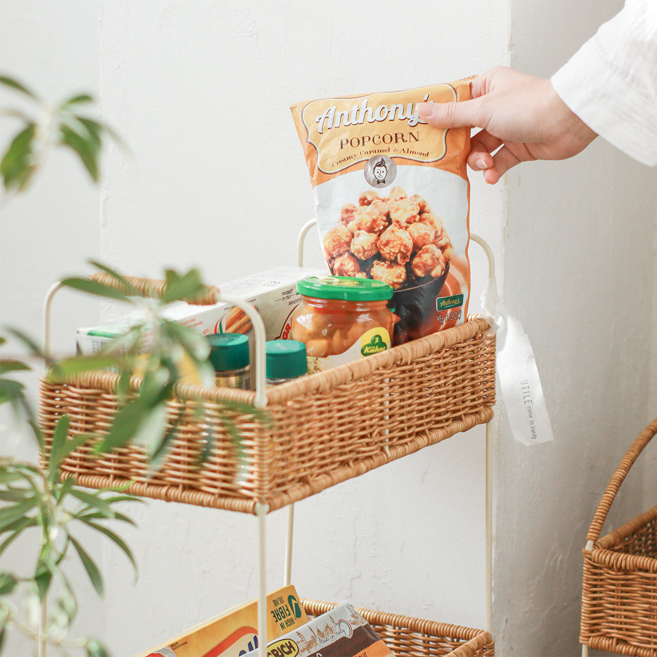 汚れてもさっと水拭きができるので、天然素材だとお手入れが気になる方も気軽にバスケットの雰囲気をお楽しみいただけます。