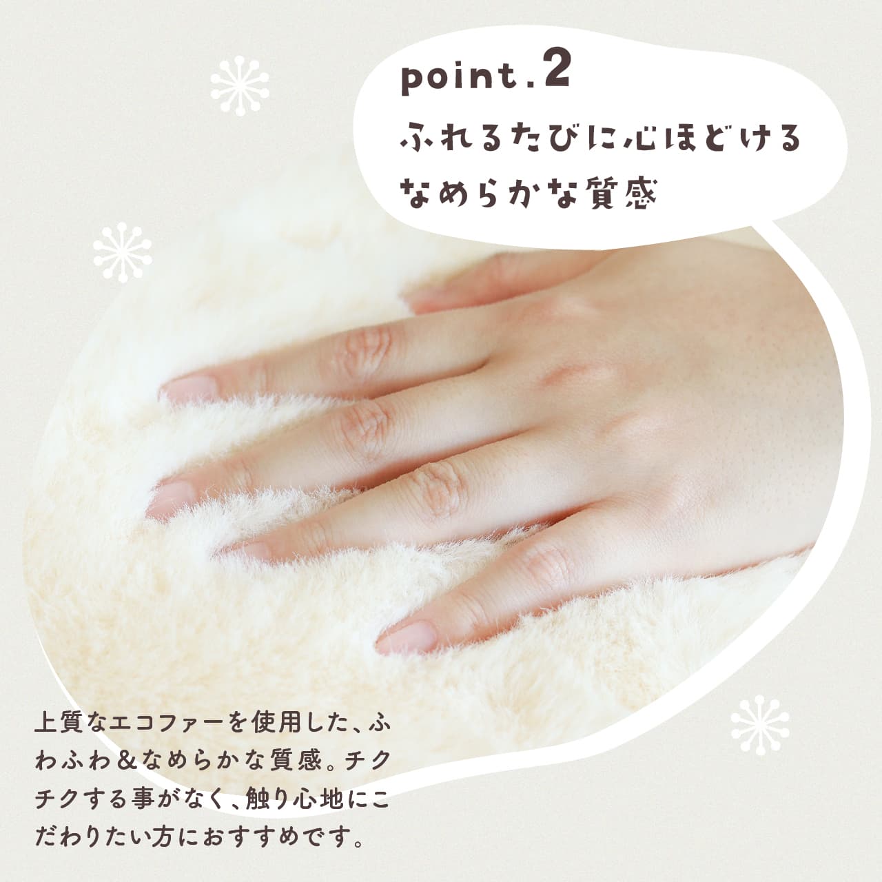 上質なエコファーを使用した、ふわふわなめらかな質感。