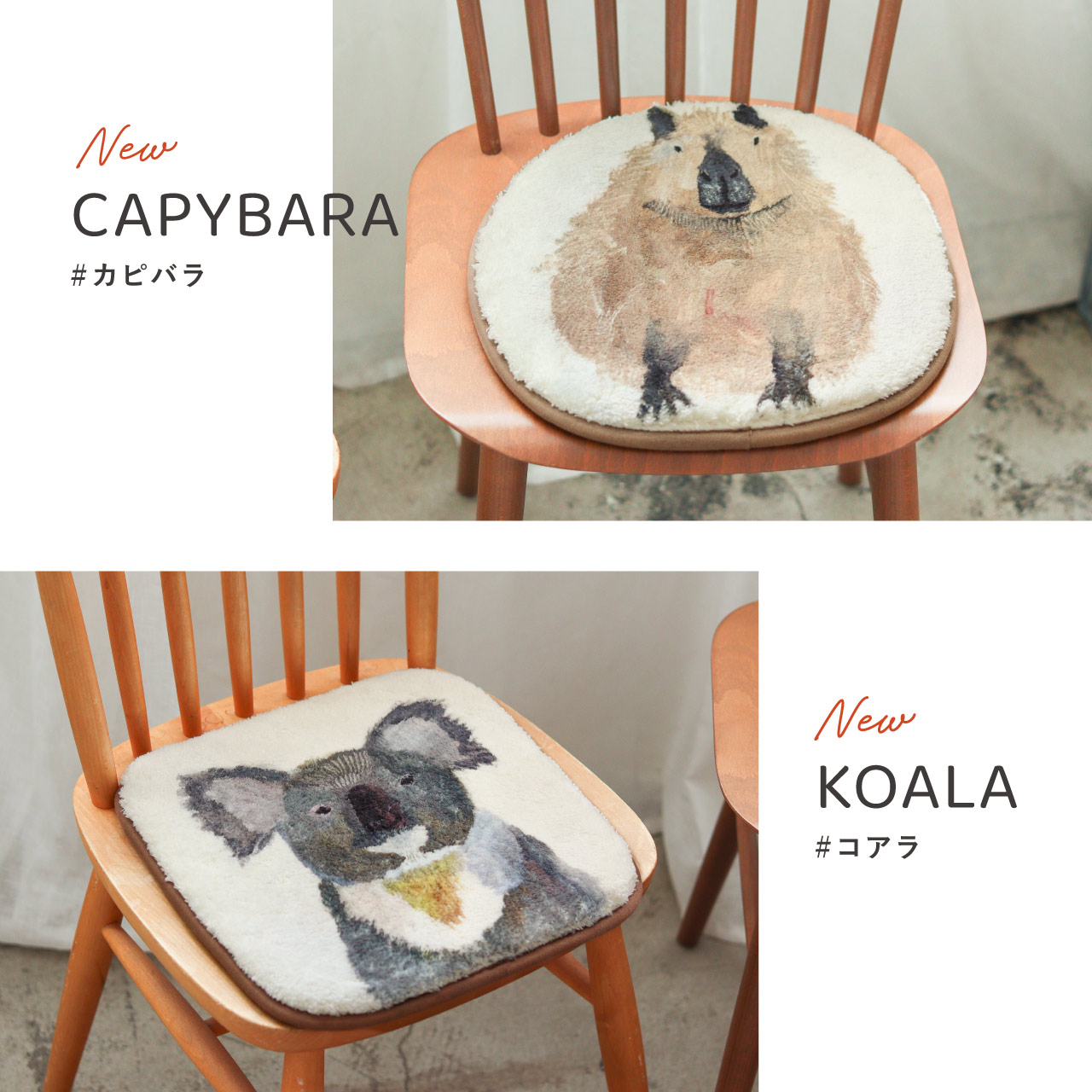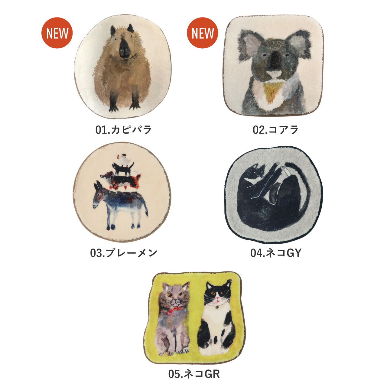 イラストは、コテツさんが一緒に生活をしている大好きな「猫」、有名なグリム童話の1シーンを描いた「ブレーメン」に加え、新柄としてカピバラ、コアラも新登場。