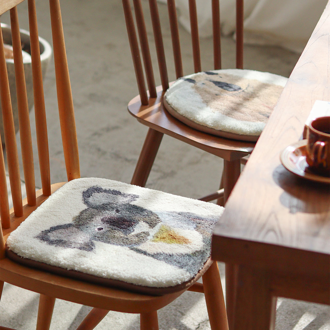 イラストが描かれた座面はふわふわとした質感で、冬場の冷たい椅子や床にも最適です。